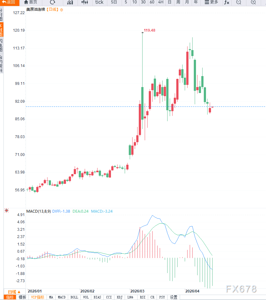 从市场反应来看,当前油价走势呈现出明显的“双重驱动结构”:一方面,中东冲突反复推升风险溢价;另一方面,外交谈判预期限制油价上行空间。WTI油价目前在89美元附近形成阶段性平衡区间,显示多空力量正在激烈博弈。