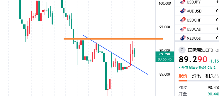原油反抽在90.6附近空,防守92.2,目标看86/82一线