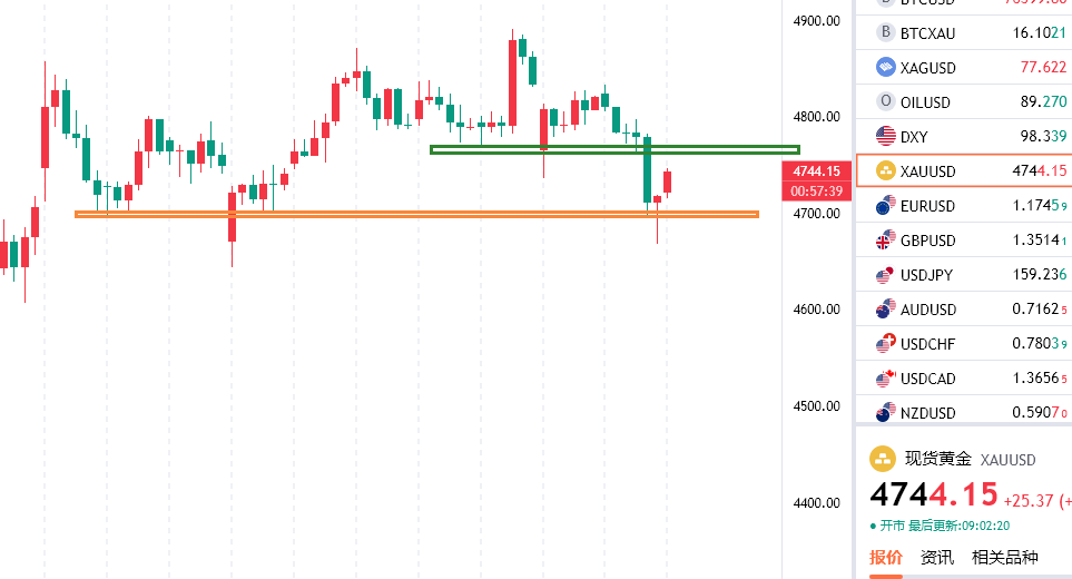 隔夜美伊新一轮谈判以中止结束,伊朗方面明确不会参加原本计划的22日也就是今天的二轮谈判,美国副总统也取消了前往巴基斯坦的行程,但是特朗普称在巴基斯坦等国的调停下愿意延长停火时间直至双方达成一致为止,市场对此消化不一,因为双方的核心点始终都存在矛盾,无法达成一致,但是具体的情况只有当事双方最清楚,对市场的影响而言目前就是一个僵持状态,我们多做关注即可,另外上个交易日公布的一些美国经济数据都是表现良好,而且美联储主席新任候选人强调了美联储的独立性,认为后续的货币政策会以实际通胀为准则制定,给到美元一定支撑,但是延续性有限,黄金上个交易日早盘反抽在4832附近之后一路震荡回落,亚盘小时线连阴回落,欧盘单阳反抽到4797附近之后承压再度回落,晚间随着一些消息数据的落地,黄金在反复之后加速下破4760短期支撑第一波回踩4722附近反抽到4757一线,二次杀跌一度触及4668附近企稳反抽,虽然是如期走了探底回升,但是探的深度确实有些超预期,日内而言先看反弹延续,关注4758/60这个短期分水岭压力位,有效站稳可能继续冲击4800上方了, 下方关注逐步上移的4720/30一线支撑。