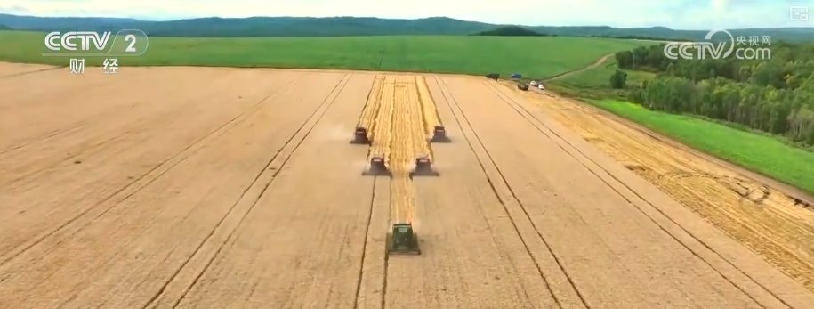 走进嫩江市塔溪乡的小麦种植区,数台联合收割机在田间穿梭,将成熟的麦穗卷入机身。饱满的麦粒从卸粮口倾泻而下,装载到运粮车里。