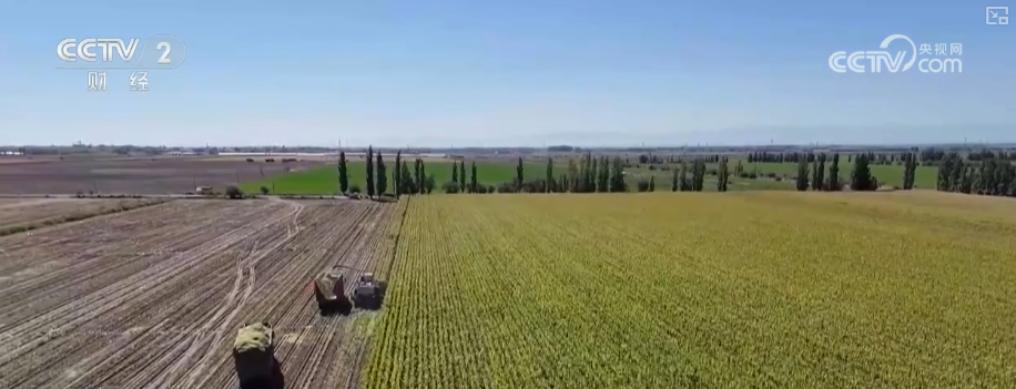 央视网消息:近日,新疆塔城两万亩青贮玉米的收割工作全面启动。在连片玉米地里,大型收割机与运输车协同作业,一派繁忙景象。