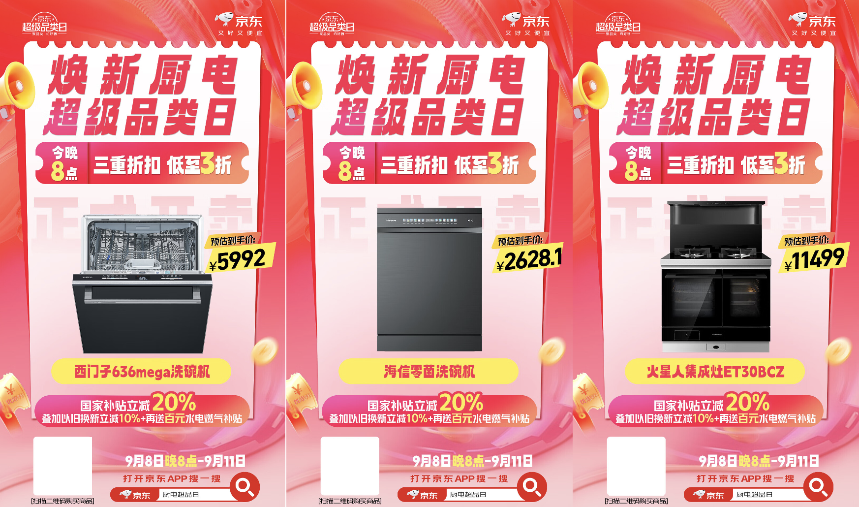 从吸油烟机、热水器,到洗碗机、集成灶,京东焕新厨电超级品类日每一款精选好物都致力于让下厨更轻松、让生活更舒适。现在上京东APP搜索“厨电超品日”,即可享受国家补贴、以旧换新、水电燃气补贴三重优惠,部分产品价格更低至3折!活动持续至9月11日,抓紧机会,为家的温度再添一份美好吧。