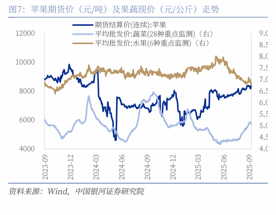 物价表现:(1)CPI:猪肉价格止跌企稳,鸡蛋价格持续走高。截止9月12日,猪肉平均批发价周环比上升0.14%,生猪期货价格下降0.5%。养殖端出栏节奏有所放缓,缩量提价动作增加,叠加气温下降,终端消费需求小幅回暖,导致猪肉批发价由跌转涨,生猪价格跌幅收窄。果蔬方面,28种重点监测蔬菜平均批发价格上升0.75%,6种重点监测水果平均批发价下降0.92%,苹果期货结算价格下降0.87%。北方供货逐渐增加,蔬菜价格涨幅收窄。换季货源上市,供给压力缓解,水果价格整体下行。西部产区优果率低,苹果市场好坏果价格分化加剧,导致近期苹果期货价格持续波动,均价下滑。此外,鸡蛋价格周环比上升2.41%,双节临近,终端备货需求旺盛,对价格支撑作用明显,叠加产销区库存较少,部分产区有抢货现象,整体供应偏紧,鸡蛋价格继续走高。