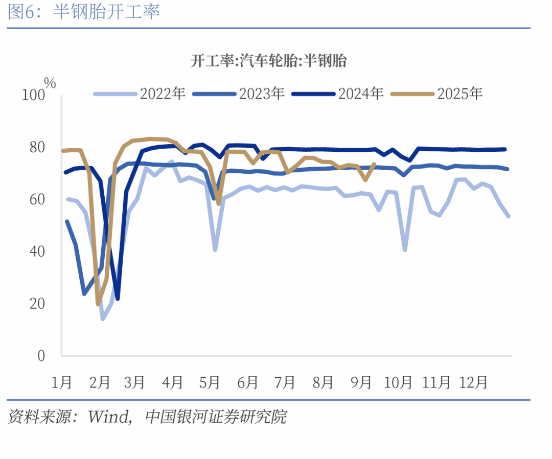 国内宏观-生产端:生产回归正常,截至9月13日,高炉开工率平均较上周反弹3.47pct至 83.58%;线材开工率环比涨1.21pct至48.28%;焦炉开工率环比升3.01pct至75.6%。地产基建保持低迷,螺纹钢开工率平均为42.62%,环比下降1.26pct;石油沥青装置环比升6.8pct至34.9%。消费制造业方面,汽车半钢胎开工率环比升5.99pct至73.46%。化工方面,PTA产量环比涨9.87万吨至138.8万吨,PTA开工率环比涨5.47pct至74.95%;ABS开工率环比涨1pct至70%。