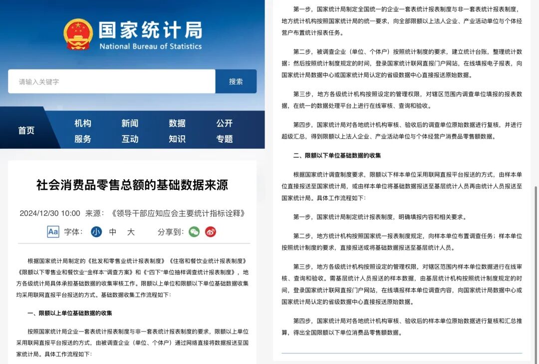 为什么会出现统计数据和从业人员体感不一致的情况呢?我们先来看看社零数据的统计的统计来源,根据查询国家统计局相关网页得知,《批发和零售业统计报表制度》规范规定采用联网直报平台收集数据。但限额以上单位是企业直接报送,限额以下单位通过抽样调查方式报送。