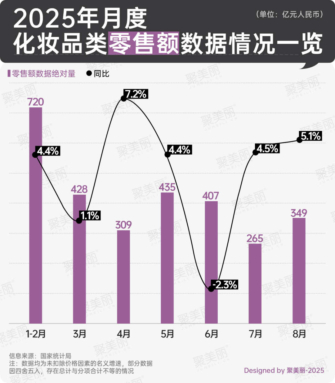 可见,8月份仍是充满“寒意”的一个月。但从国家统计局发布的化妆品月度零售数据看,却是增长的,为何会这样?
