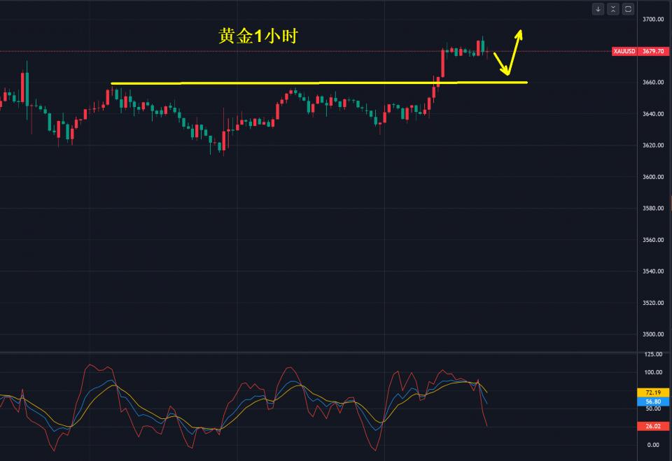 今天,我的观点是等金价回落靠近3665-62美元的范围内多,破位后回踩确认,向上关注3685-3690美元。