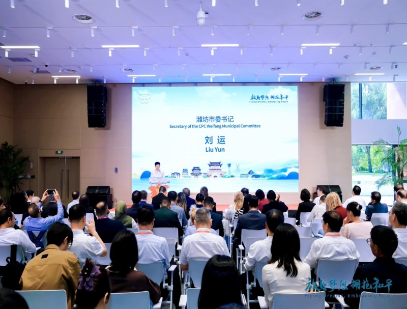 刘运在致辞中表示,开放发展是永恒主题,合作共赢是时代潮流。作为世界风筝都,如今的潍坊,恰如一只志贯九霄的“巨型风筝”,在新时代开放发展的大潮中,振翅高飞、扶摇直上。他从产业、科技、开放、文化四个维度全面推介潍坊:潍坊以产业立市,动力装备、新一代信息技术、食品工业、高端化工四个千亿级产业已聚集成势,展现出攀高向新、动能强劲的实力之城;作为国家创新型城市,潍坊高新技术产业产值占比超过6成,人才资源丰富,创新成果不断涌现,彰显出创新涌动、新质竞发的活力之都;潍坊区位优越、通达八方,港口、高铁、航空纵横交织,经贸往来遍及全球,塑造了通达便捷、海纳百川的前沿高地;潍坊底蕴深厚、文脉绵长,风筝传承千年、闻名世界,千年古城与现代风貌交相辉映,描绘出底蕴深厚、文脉绵长的文化名市。他表示,“十五五”期间,潍坊将跨入万亿城市,盛情邀请海内外朋友关注潍坊、推介潍坊、讲好潍坊故事,在双向奔赴、彼此成就中,奋力谱写美美与共、和合共生的精彩华章。