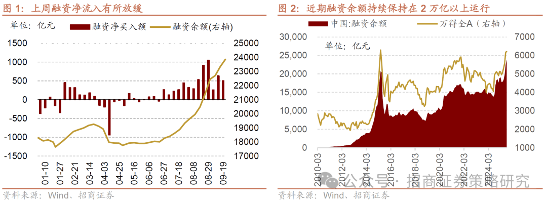 8月中旬以来融资余额持续稳定在2万亿以上运行。截至2025/9/18融资余额达到2.39万亿,绝对规模超过2015年6月历史高点,但是从相对规模看融资余额占A股流通比值仅2.54%(历史以来90%分位),距离2015年高点4.73%仍有距离。
