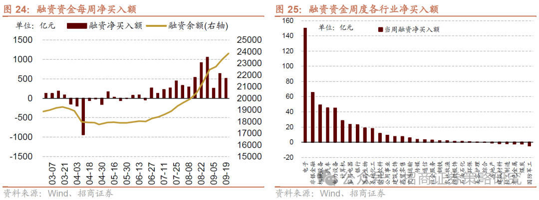 两融方面,融资资金前四个交易日净流入507.9亿元。从行业偏好来看,本周融资资金集中买入电子,净买入额达149.8亿元,其他净买入规模最高的行业主要包括非银金融、机械设备、汽车等;净卖出的主要是国防军工、煤炭、有色金属等。