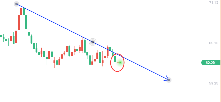 原油反弹62.8附近空,防守63.6,看61.6附近,破位看61下方