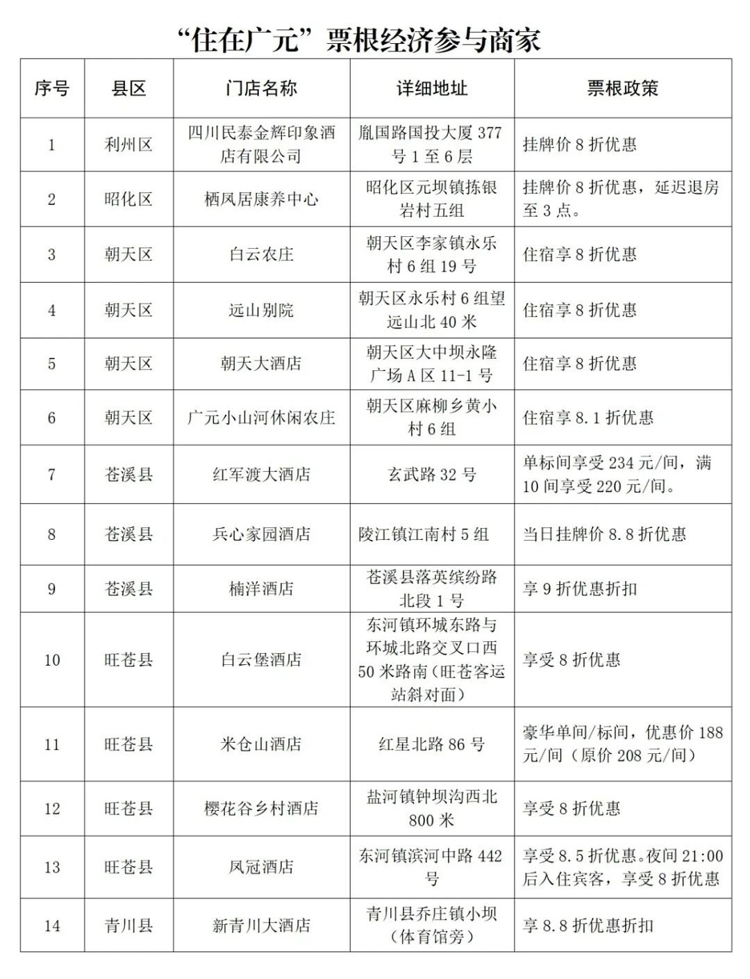 景区福利方面。到广元主场参赛的客场球队的球员、工作人员,凭本人身份证和赛事工作证,可享受全市A级旅游景区免门票优惠。到广元主场观赛的所有球迷,凭本人身份证和广元主场球票票根,可享受全市A级旅游景区免门票优惠。