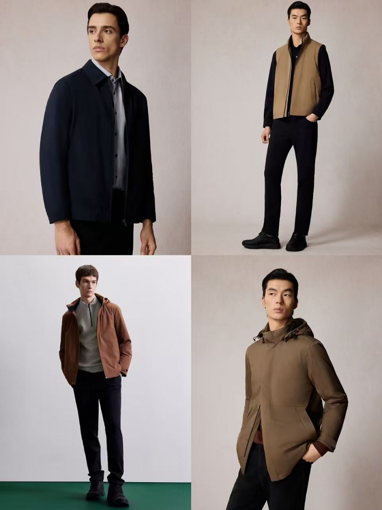 卫衣羽绒品类将卫衣的休闲感与羽绒的保暖性结合,推出“轻户外”风格单品。通过多连套穿搭方式,可内搭T恤、外搭马甲或外套,实现从商务休闲到户外轻运动的无缝切换。三合一穿搭系统进一步强化服装适应性,一件外套可作为夹克外穿,内胆可单独作为轻羽绒服,也可组合穿着,轻松应对多变天气与场合需求。这种“一衣多穿”的设计不仅提升单品实用价值,也减少重复购衣带来的资源浪费,与可持续理念形成闭环。