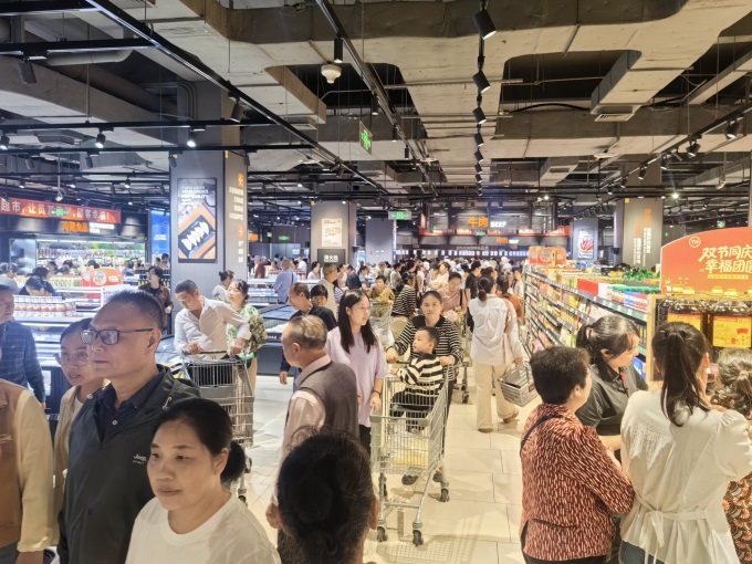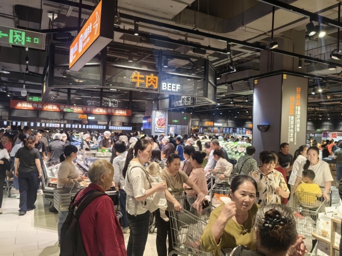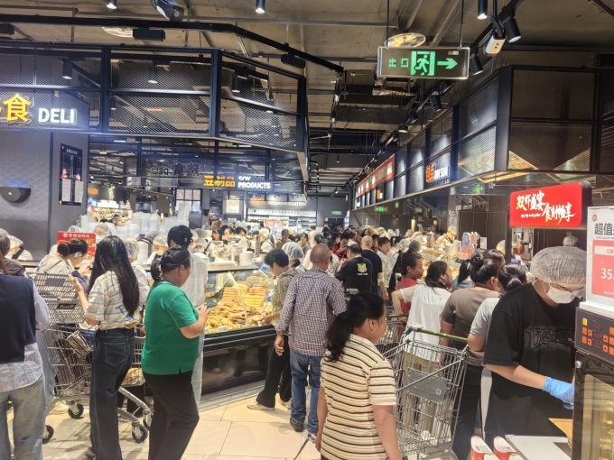 在商品结构层面,綦江万达广场店进行了大幅优化:原有13240支商品下架7788个,新增3668个,新增比例超40%。调整后商品结构达到胖东来商品结构的80%,烘焙、熟食等鲜食比例从5%跃升至20%,构建起“品质+场景”的消费新生态。