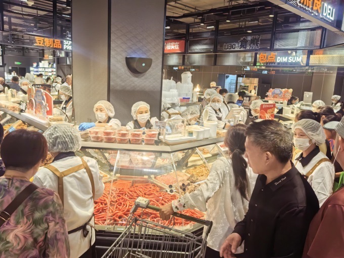 熟食区主推奥尔良烤鸡、韩式炸鸡、进口三文鱼、双汇热卤甜肠,更契合綦江饮食口味推出胶原满满的香辣猪蹄,软糯Q弹、麻辣鲜香,以及香辣猪耳朵、YH凉拌菜、麻辣面爪等本土风味产品。