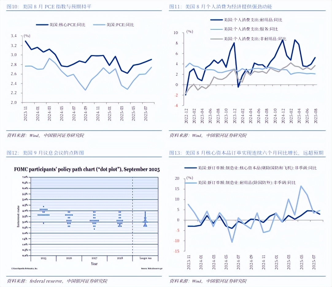 另一方面,穆萨勒姆等则认为需要谨慎行事,关注通胀指标决定未来政策路径。周四,美国根据欧盟与美国 7 月份达成的贸易协议,正式将汽车关税从 27.5% 降至 15%,针对铝和钢铁的谈判才刚刚开始,这两项产品的关税仍高达50%。在国内方面,工信部部长李乐成表示,“十五五”时期,要实施培育新兴产业,加快打造一批新兴支柱产业,开辟人形机器人、脑机接口、元宇宙、量子信息等新赛。央行货币政策委员会召开第三季度例会,会议提出,建议加强货币政策调控,引导金融机构加大货币信贷投放力度,探索常态化的制度安排,维护资本市场稳定。