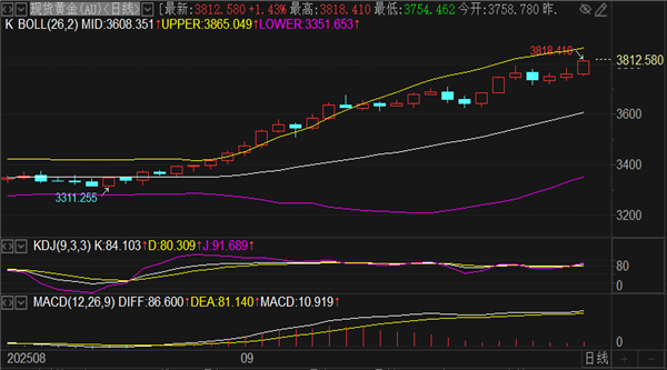 黄金实时行情分析:周一,黄金价格刷新至3812一线,感觉上涨没完没了,明天就是月末,还会出现暴跌洗盘吗?这个问题留有悬念,我还是会抓时机节点去尝试空单。盘面上来看短周期触顶后回落,目前的震荡区间关注3812-3791范围,不确定顶部到底在哪,计划是贴近3818-23区域再次做空。