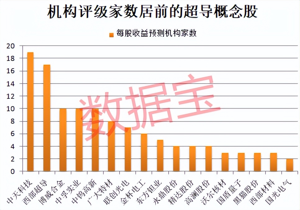 机构评级家数靠前的超导概念股还有西部超导、中钨高新、博威合金、中孚实业、广大特材等。