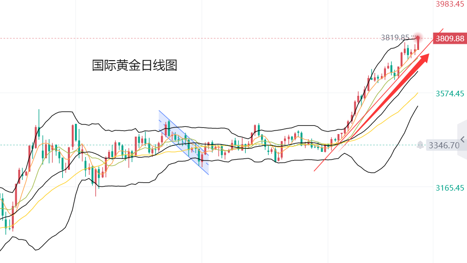从之后的走势看,上周五欧盘盘中,黄金保持震荡走势,金价多次试探3758美元遇阻,这是上周四金价从日高3762美元遇阻下跌后,企稳反弹的高点位置,美盘开盘后,黄金成功向上突破,短线拉升至3783美元,之后金价多次上探未能突破,收盘前跌至3760美元;本周一开盘,黄金小幅回落3757美元后,走势震荡上升,连续突破短期压制,升破3800美元整数关口,刷新历史新高至3819美元,短期表现强势。总体来看,上周五黄金保持高位震荡,走势基本符合预期,本周一金价开盘后持续上涨,主要因降息预期与避险需求,继续推动金价冲高。