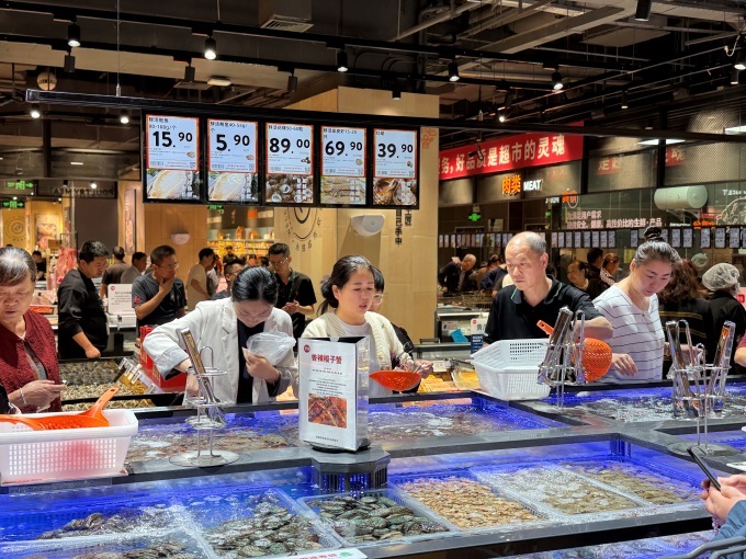 肉禽水产引入农夫好牛牛腩块、无抗鸡、潮汕风味牛肉及澳洲、新西兰进口牛肉,并新增帝王蟹、梭子蟹、三文鱼等高端海鲜。