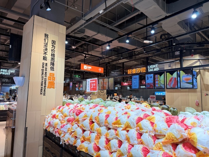 “调改后,我们在食品安全上也加强了管理,比如新鲜果切、鲜榨果汁实行‘468原则’——超过4小时八折、6小时六折、8小时下架;叶菜、肉禽、水产、烘焙等部分商品,以及熟食全品项实行日清折价,不售卖隔日商品。”合肥大区相关负责人介绍道。