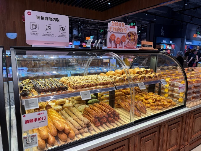 熟食烘焙强化现场制售能力,推出锅包肉、捞汁小海鲜及胖东来同款小甜肠、麻辣牛肉条等爆款熟食产品,并引入鸭子的奶、榴莲千层、金秋桂花丰收的喜悦、核桃满满、山茶花吐司等热门烘焙产品。