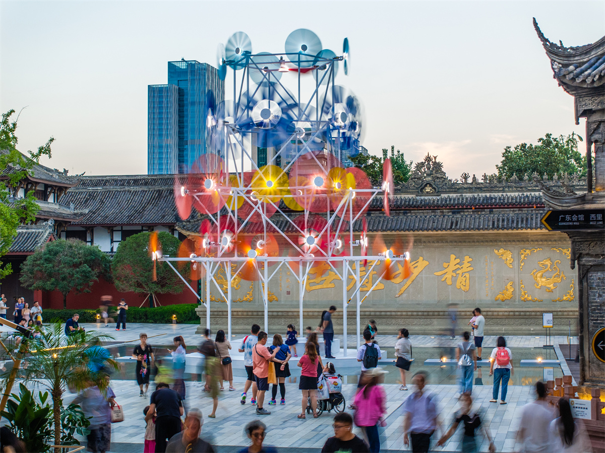 艺术装置“乘风”亮相成都太古里漫广场。