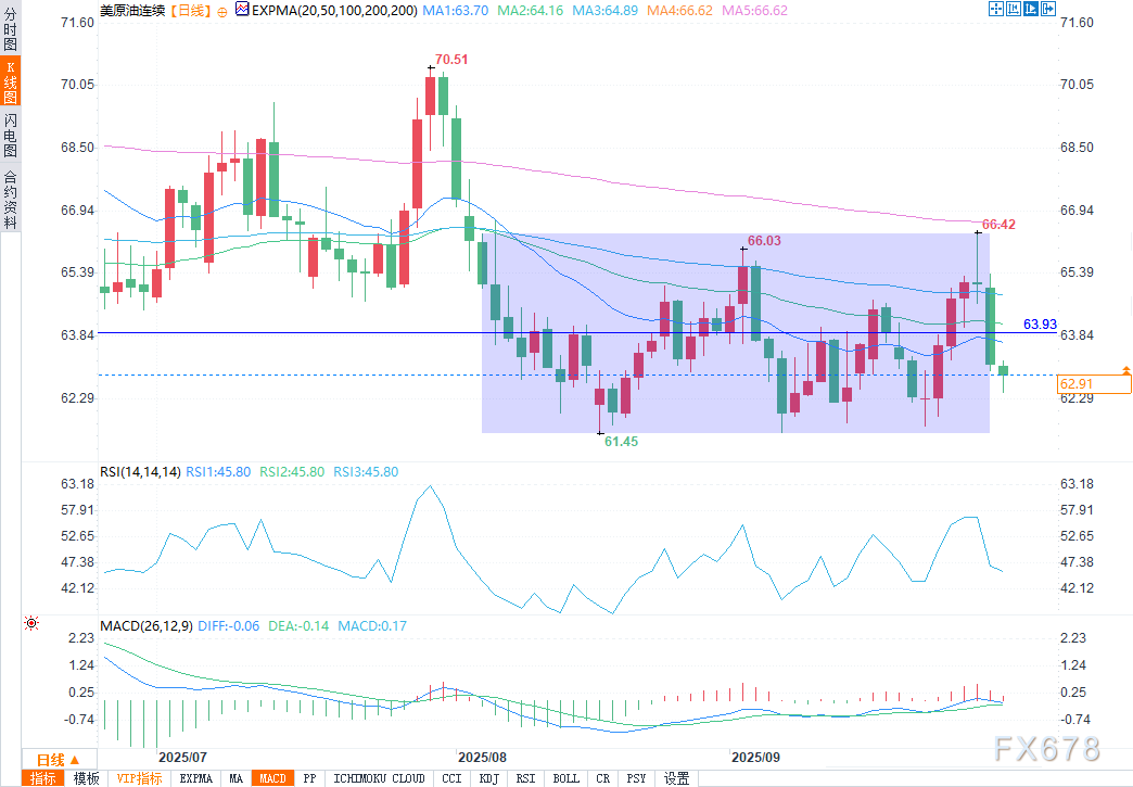 汇通财经APP讯——周二(9月30日),WTI原油期货在周一大幅下跌后延续跌势,并明确跌破64.22美元的50日移动平均线。这一走势加剧了市场看空情绪,目前50日和200日移动平均线均已转为阻力位。关注这些指标的技术面交易者认为,此次跌破标志着趋势开始转向看空,市场动能目前偏向下行。