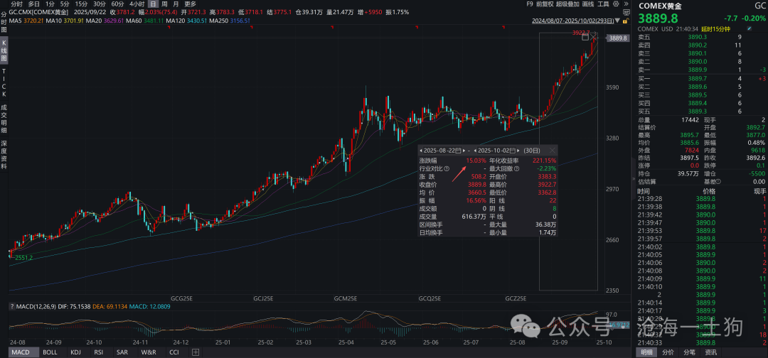 如上图所示,COMEX黄金在8月22日之后继续上涨了15%。