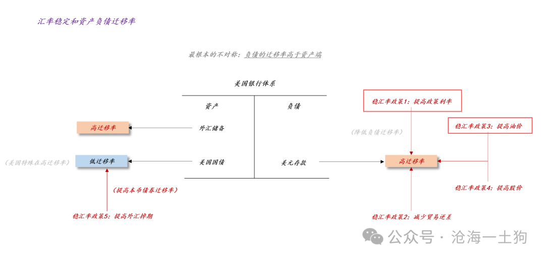 对任何国家而言,币值基本稳定是天然约束。如上图所示,为了维持本币基本稳定,一国政府在负债端有4个基本措施:1、提高政策利率;2、提高油价;3、减少贸易逆差;4、提高股价。