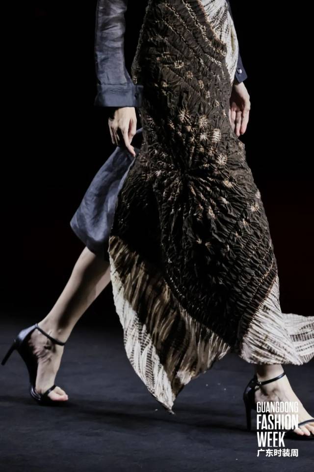 2025年9月29日晚八点,广东时装周的聚光灯穿透舞台,序品牌 “一路生花” 主题大秀的开篇,以香云纱为笔,结合多项非遗技艺融合创新设计,打破了人们对非遗香云纱的固有印象 —— 不是博物馆里尘封的 “古老面料”,而是流动着岭南气韵,交织着多重非遗基因的时尚载体。