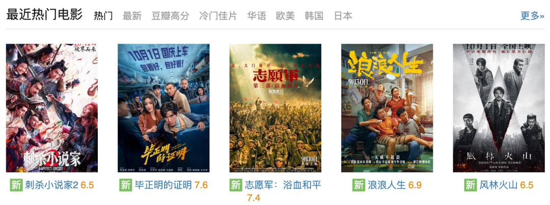 票房表现与口碑密切相关。根据豆瓣数据,目前已开分的国庆档新片口碑均在“及格线”以上。其中,《毕正明的证明》以7.6分领跑,《志愿军:浴血和平》也达到7.4分。