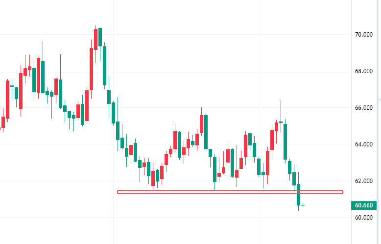原油反弹61.3附近空,防守62,看60/59一线