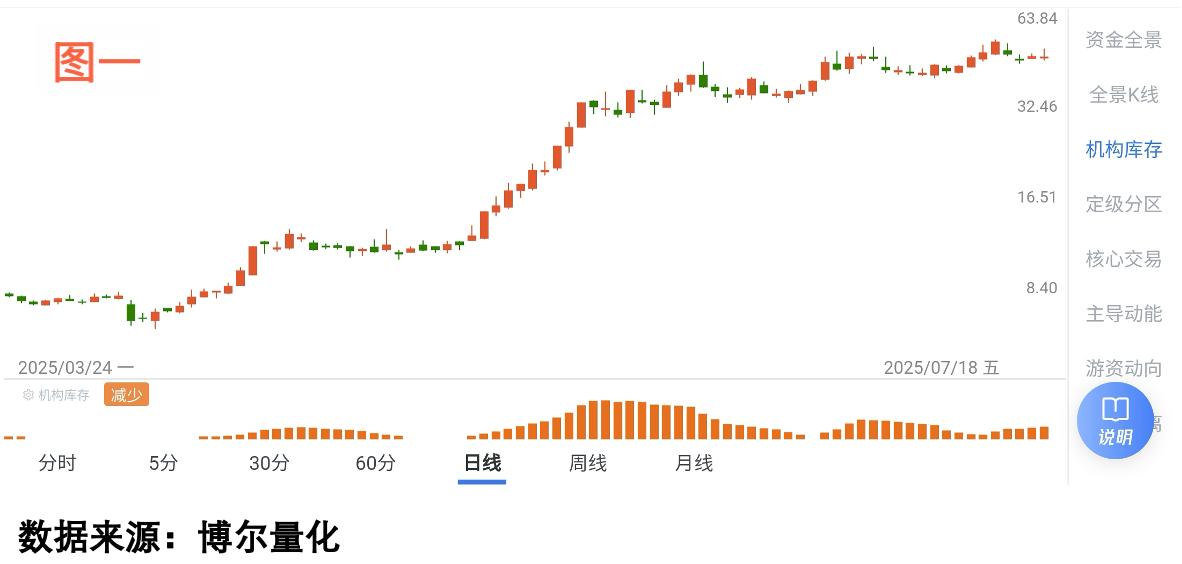 这就是我用了十多年的量化大数据系统提供的交易行为数据图,图中的橙色柱体就是反映机构资金活跃程度的「机构库存」数据,如果「机构库存」数据持续的时间越长,也说明机构参与交易的积极性越高,试问下,如果一只股票没有得到大量的机构认同,机构交易的积极性会这么高吗?所以,「机构库存」越是持续的时间长,不就是机构抱团的反映,所有的一切,最终都会通过交易行为呈现出来。