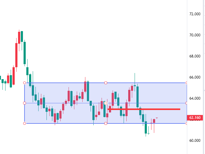 原油反弹62.7附近空,防守63.5,看61下方