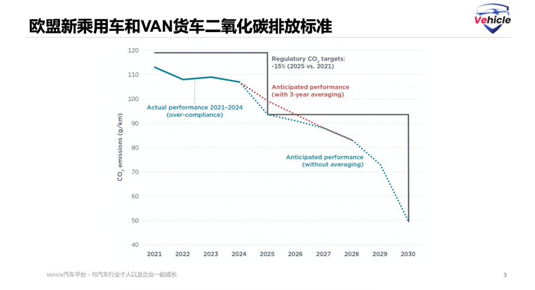 根据修正案引入的碳排放平均规定,合规性不再基于主机厂 2025 年的二氧化碳排放表现来确定,而是基于 2025 年至 2027 年 3 年期间的平均排放水平,也就是放宽了时间要求。