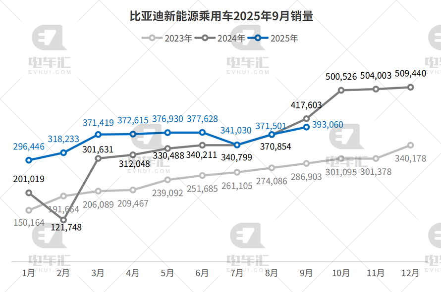 比亚迪乘用车以393,060辆的销量蝉联9月冠军,尽管受前期高基数影响同比微降5.9%,但环比仍实现5.8%的增长,1-9月累计销量更是突破321.9万辆,同比增幅17.6%。长期以来,比亚迪凭借王朝系列与海洋系列构建的全品类车型矩阵,再加上在电池技术研发与成本控制方面的核心优势,始终在新能源市场占据稳固的领先地位。