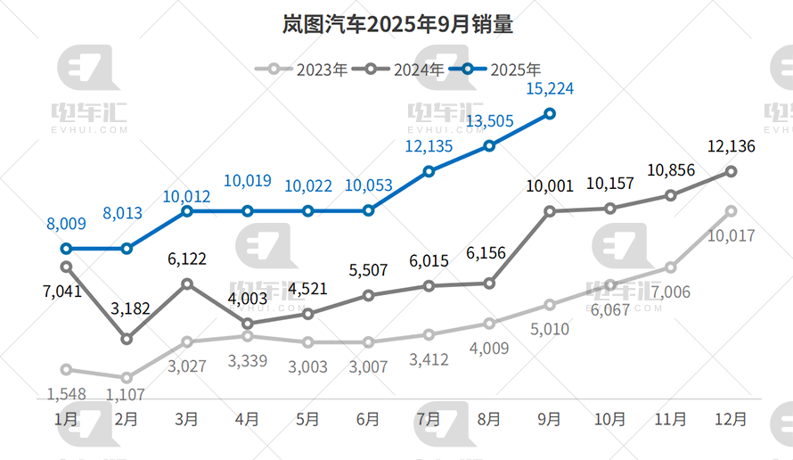 岚图汽车9月销量15,224辆,同比增长52.2%,环比增长12.7%,保持了稳健的增长态势。近期,岚图追光L与泰山车型开启预订,这两款车型搭载了华为ADS4+鸿蒙座舱的高端配置组合,成为吸引消费者的核心卖点,为其销量增长提供了有力保障。
