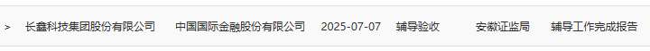 近日,证监会网上办事服务平台显示,长鑫科技集团股份有限公司IPO辅导状态变更为“辅导验收”。