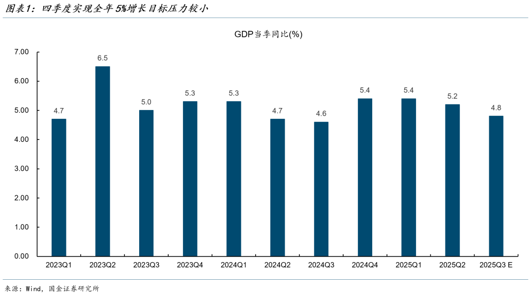 第二,从完成经济增长目标的角度看,四季度实现全年GDP增速5%目标压力较小,出台增量政策的必要性偏低。