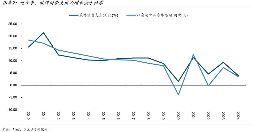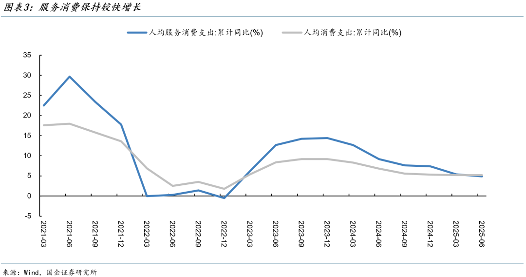 高基数叠加耐用品透支,四季度消费将承压,但最终消费仍将支撑GDP增长。去年1500亿元“以旧换新”补贴大范围落地的时点是9月,对于今年四季度而言,面对去年同期的高基数,“以旧换新”资金仅剩690亿元,同时耐用品的透支效应也可能在四季度显现,导致社零增速承压。但近年来,最终消费的增长基本都高于社零增速,主要原因是服务消费保持高增,2024年人均服务消费支出同比增长7.4%,人均商品消费支出同比增速仅为3.6%。