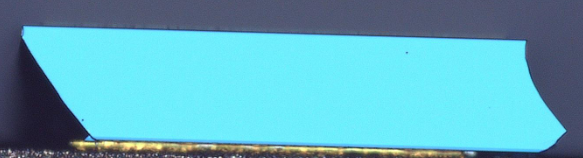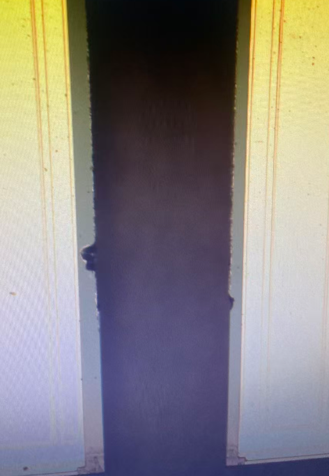 切割后的不良主要会有几种:1)端面外观不良,比如下图,边缘歪歪扭扭。就是有崩却,切割破裂异常。