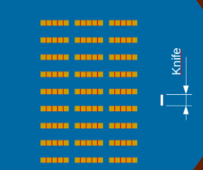红色是劈刀,蓝色是划刀的位置。因此就会存在一个位置偏差。机台上看到的是N面图案,劈刀在P面的位置是看不到的,劈之前可以先用软件校准劈刀位置和显微镜中心线对齐。