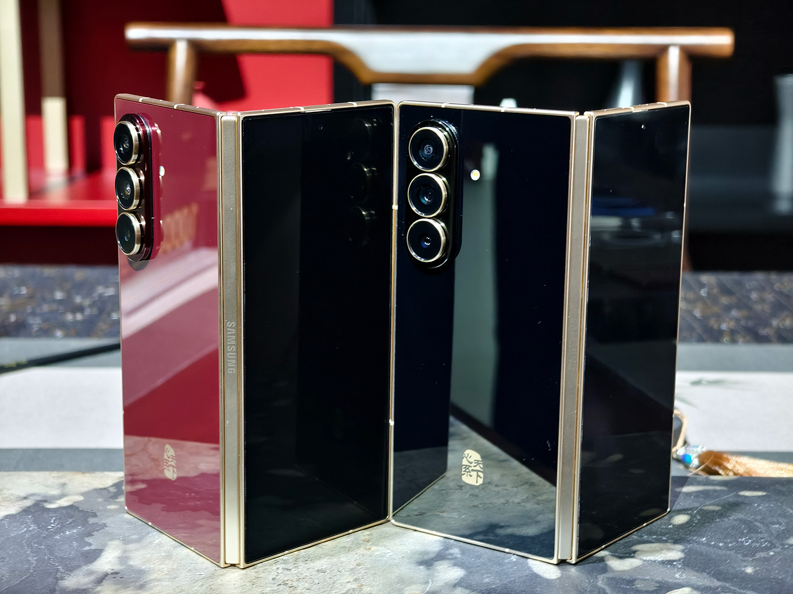 三星W26带来两款颜色,丹曦红和玄曜黑,前者是心系天下首款红色手机,高雅且更具柔性美,后者将黑色演绎更为深邃和纯净。根据真机上手体验,三星W26的两款颜色都很漂亮,质感很棒,不过背板材质较易粘上指纹。