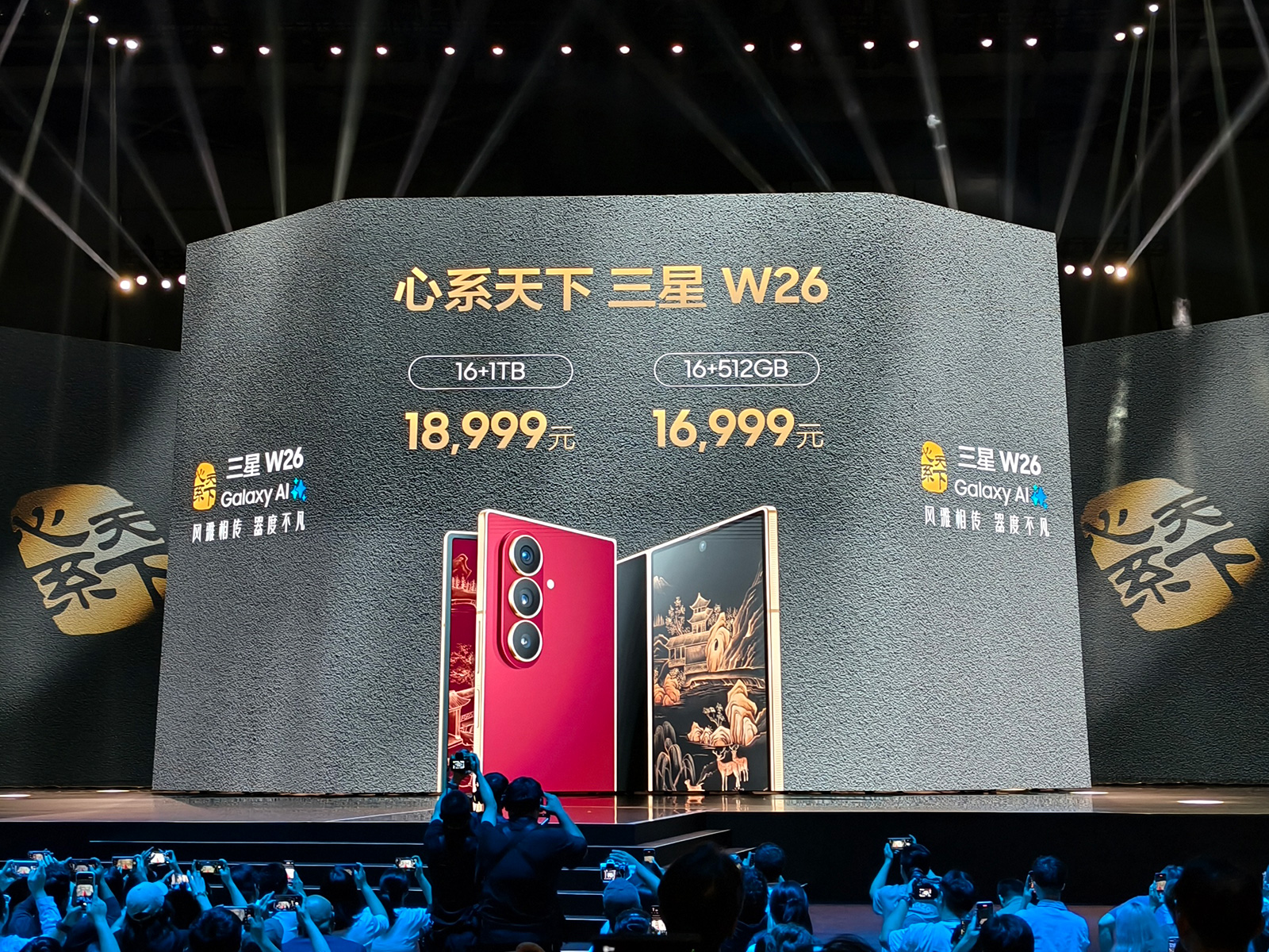 三星W26搭载骁龙8至尊版for Galaxy移动平台,内存16GB,运行基于Android 16的One UI 8,融合了丰富的Galaxy AI应用,预装心系天下专属动态壁纸。该机内置4400mAh电池,有线快充为25W。