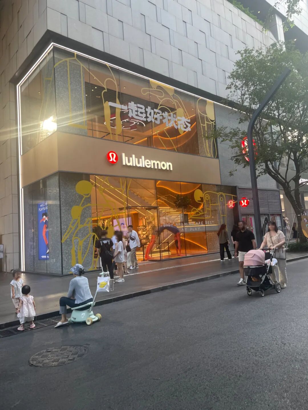 例如万象天地的开放式街区,是整个项目的核心区域,对于人流聚集、社交打卡、品牌展示等,都起着重要作用。在这条街上汇聚了UA、耐克、ON昂跑(围挡中)、始祖鸟、DESCENTE BLANC、lululemon等头部运动类品牌。