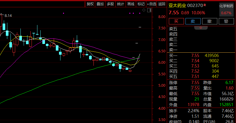 医药板块早间继续走强,化学制药、生物制品、创新药、免疫治疗等细分板块纷纷涨幅居前,亚太药业(002370)连续第3日一字涨停,贵州百灵、罗欣药业、新里程等强势涨停。