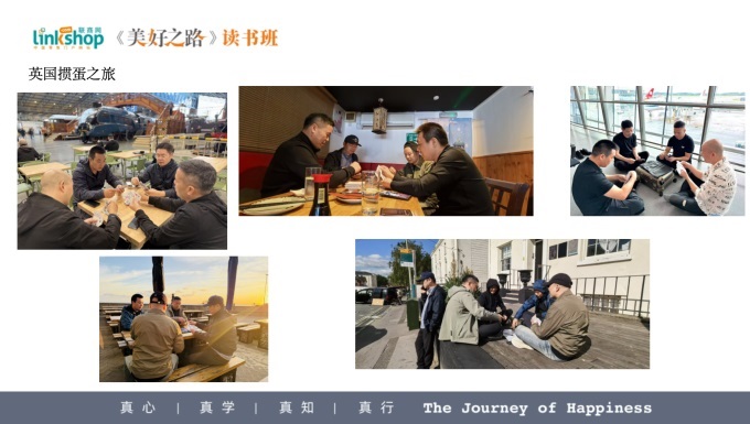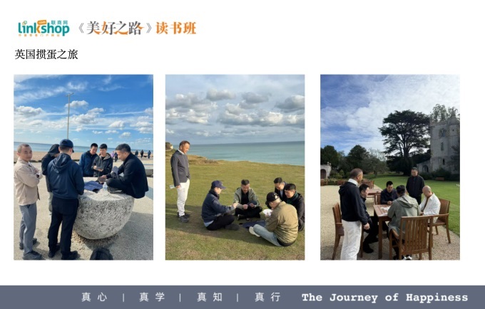 这是我们的英国“掼蛋”之旅。我们把这种文化休闲带到了英国。英国晚上很无聊,商店六点就关门,我们教他们打掼蛋,晚上喝点小酒,打打牌。他们那边通常不允许,但我们随时随地创造条件,在海边、草地上、庄园里,甚至在火车博物馆吃饭时、飞机场都不忘娱乐。这次行程总体是一段享受的过程。