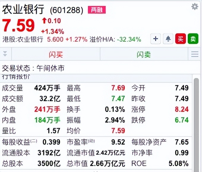 17日上午,银行股持续走强,青岛银行、厦门银行等涨幅居前。农业银行早盘一度涨超2.6%,股价再创历史新高,截至午间休市,农业银行报7.59元/股,总市值达2.66万亿元。