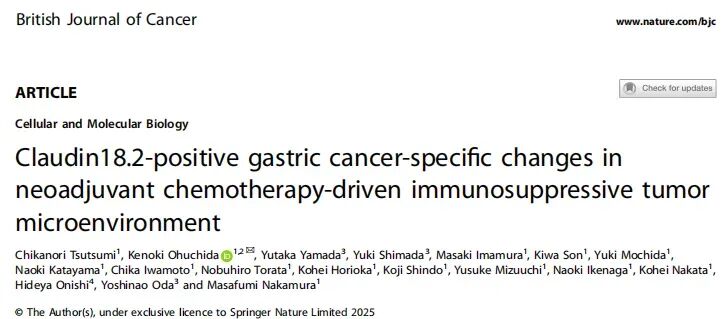 [1]Tsutsumi C , Ohuchida K , Yamada Y ,et al.Claudin18.2-positive gastric cancer-specific changes in neoadjuvant chemotherapy-driven immunosuppressive tumor microenvironment[J].British Journal of Cancer, 2025, 132(9).DOI:10.1038/s41416-025-02981-y.